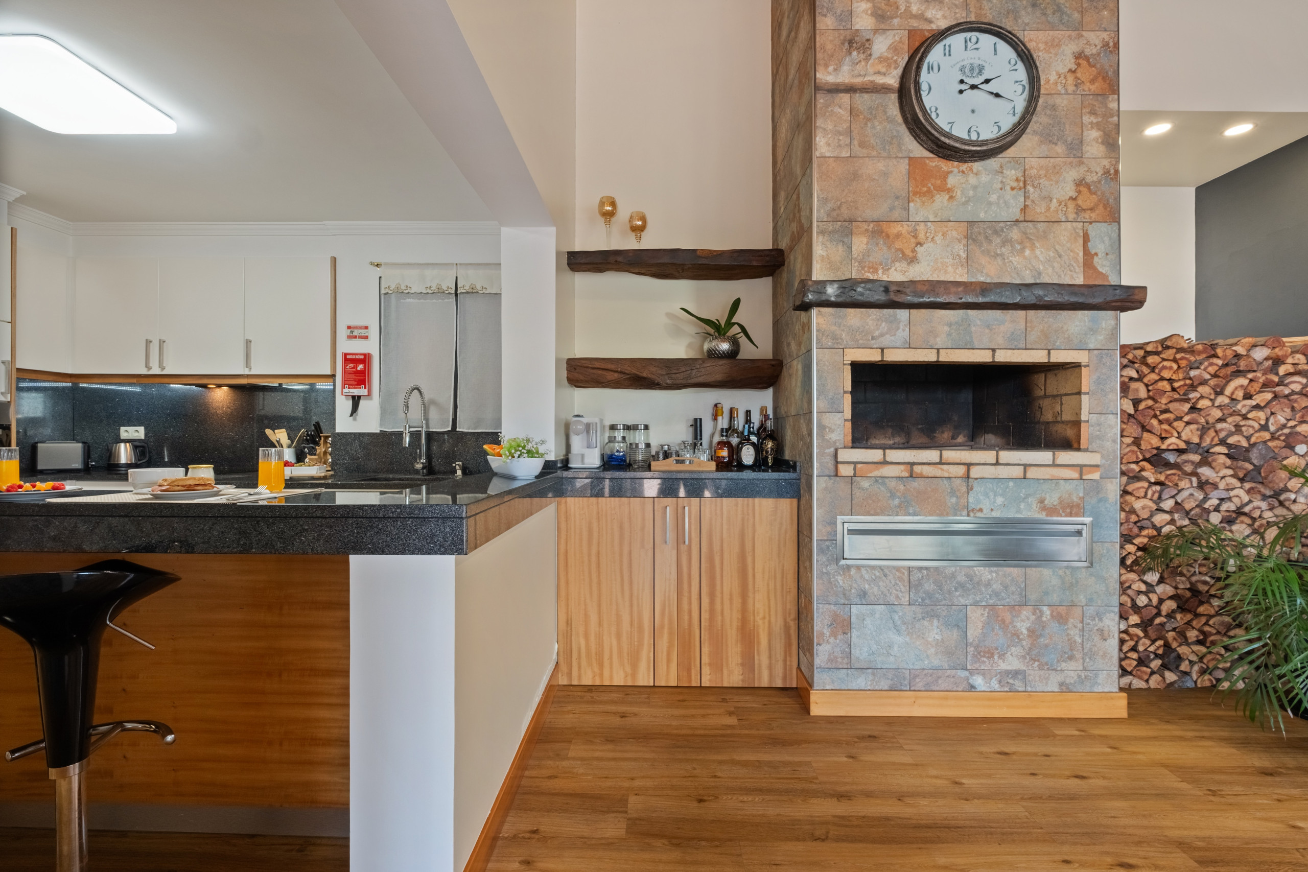 Die voll ausgestattete Open-Space-Küche ermöglicht es, Mahlzeiten mit größter Leichtigkeit zuzubereiten und macht das Haus noch praktischer. Der integrierte Grill, der als Dekorelement verwendet wird, verleiht dem Raum Stil und Persönlichkeit.