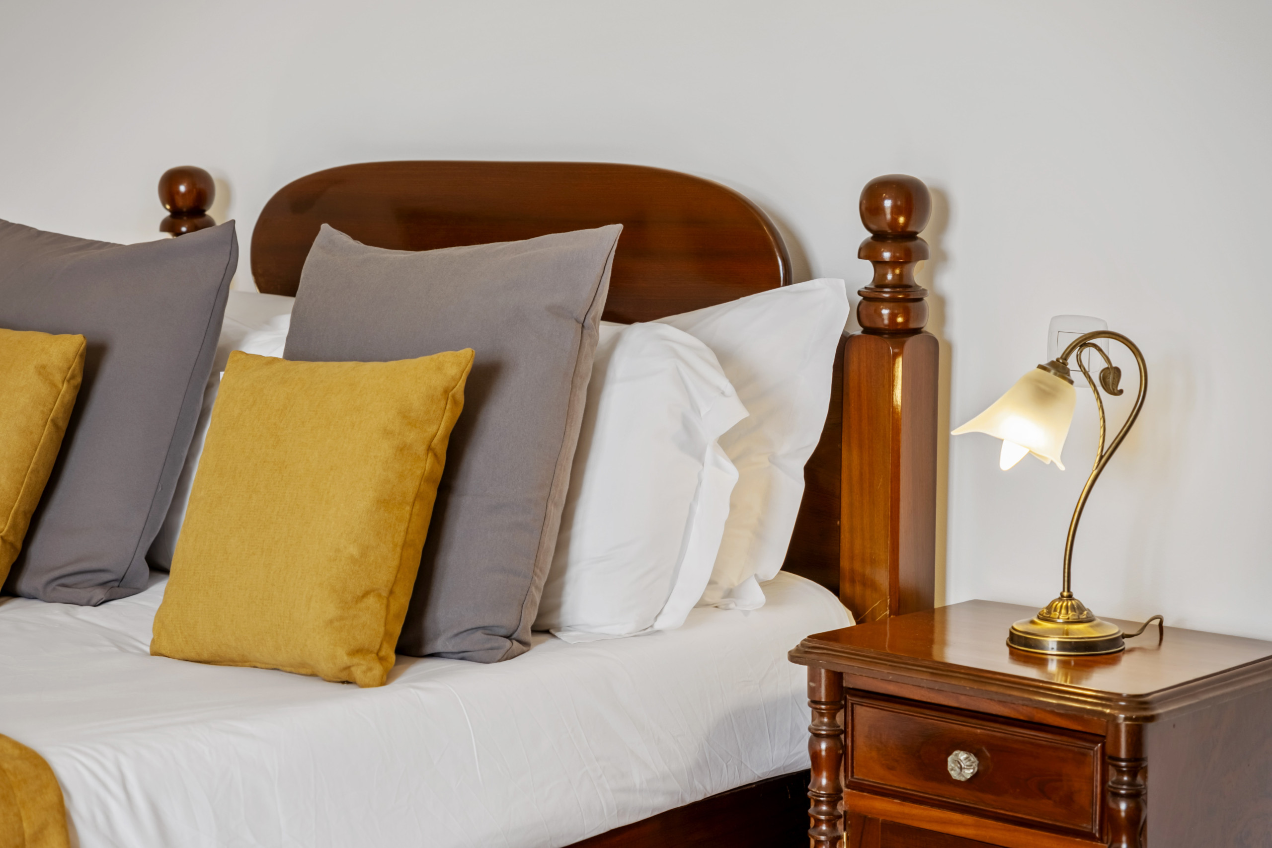 En el piso superior, la villa cuenta con tres habitaciones adicionales, diseñadas para garantizar comodidad y privacidad a todos los huéspedes: una habitación con cama de matrimonio, una habitación con cama individual y una suite con cama de matrimonio y un pequeño balcón, desde donde podrá contemplar la vista sobre la bahía y la ciudad de Funchal.