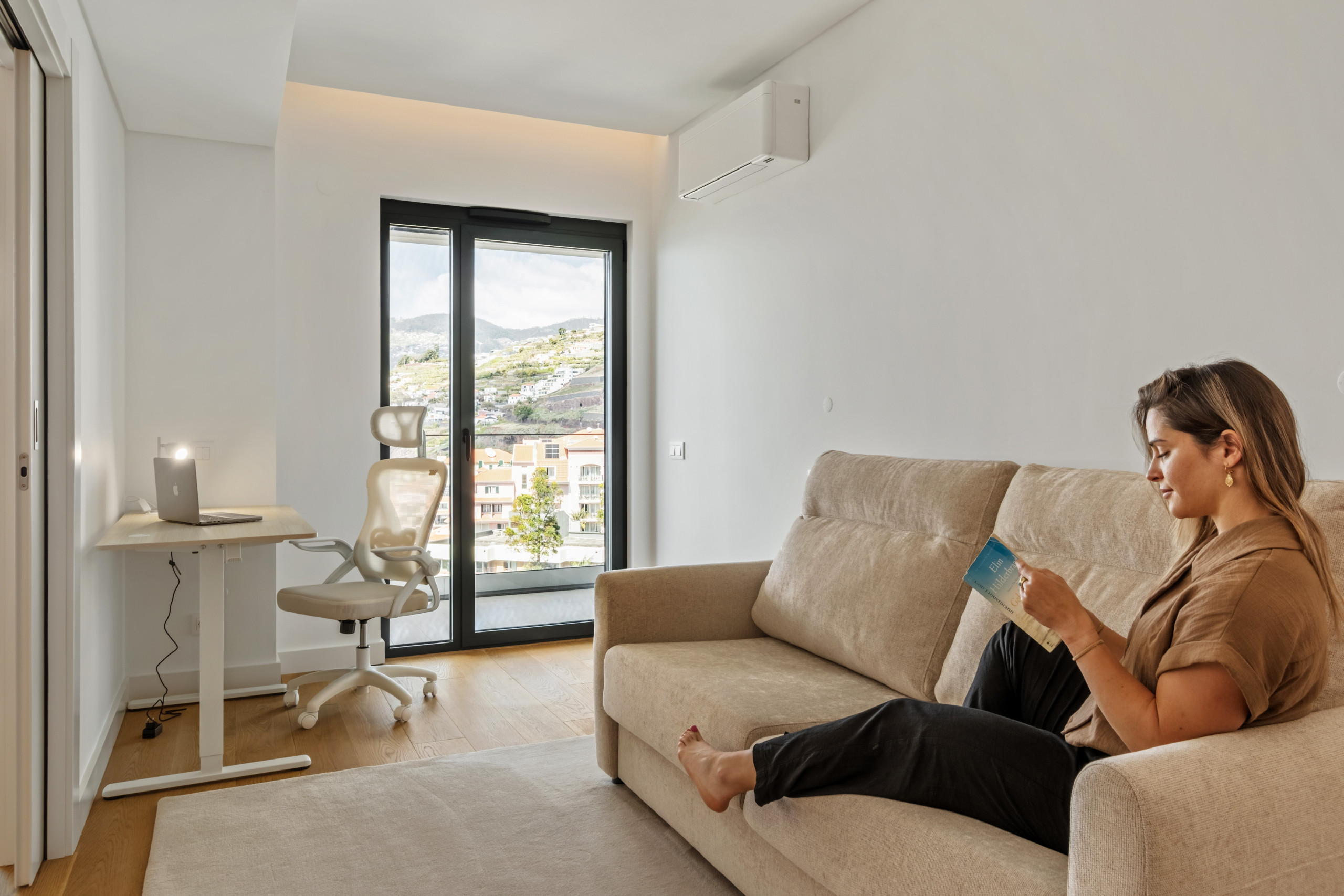 En entrant, nous sommes accueillis par un espace lumineux, où le salon s'ouvre sur une large terrasse offrant une vue splendide sur la ville et l'Atlantique, offrant le cadre parfait pour apprécier la vue magnifique sur Funchal et sur l'océan Atlantique, trinquer à la fin de la journée ou simplement se perdre dans la beauté de l'horizon.