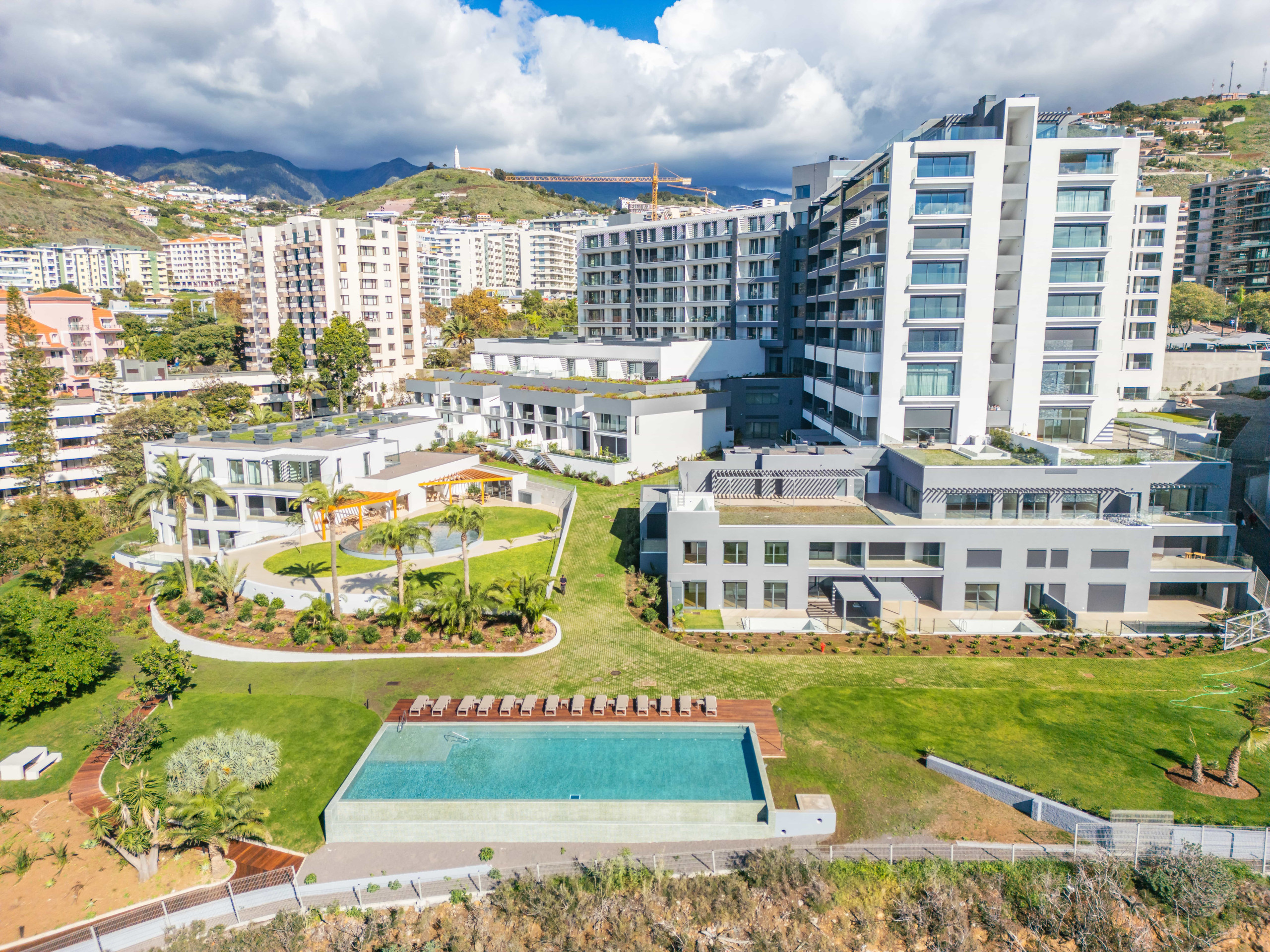 La piscine de l'immeuble, partagée avec les autres fractions, est un autre point de rencontre enchanteur, idéal pour se détendre et profiter des journées ensoleillées de Madère.