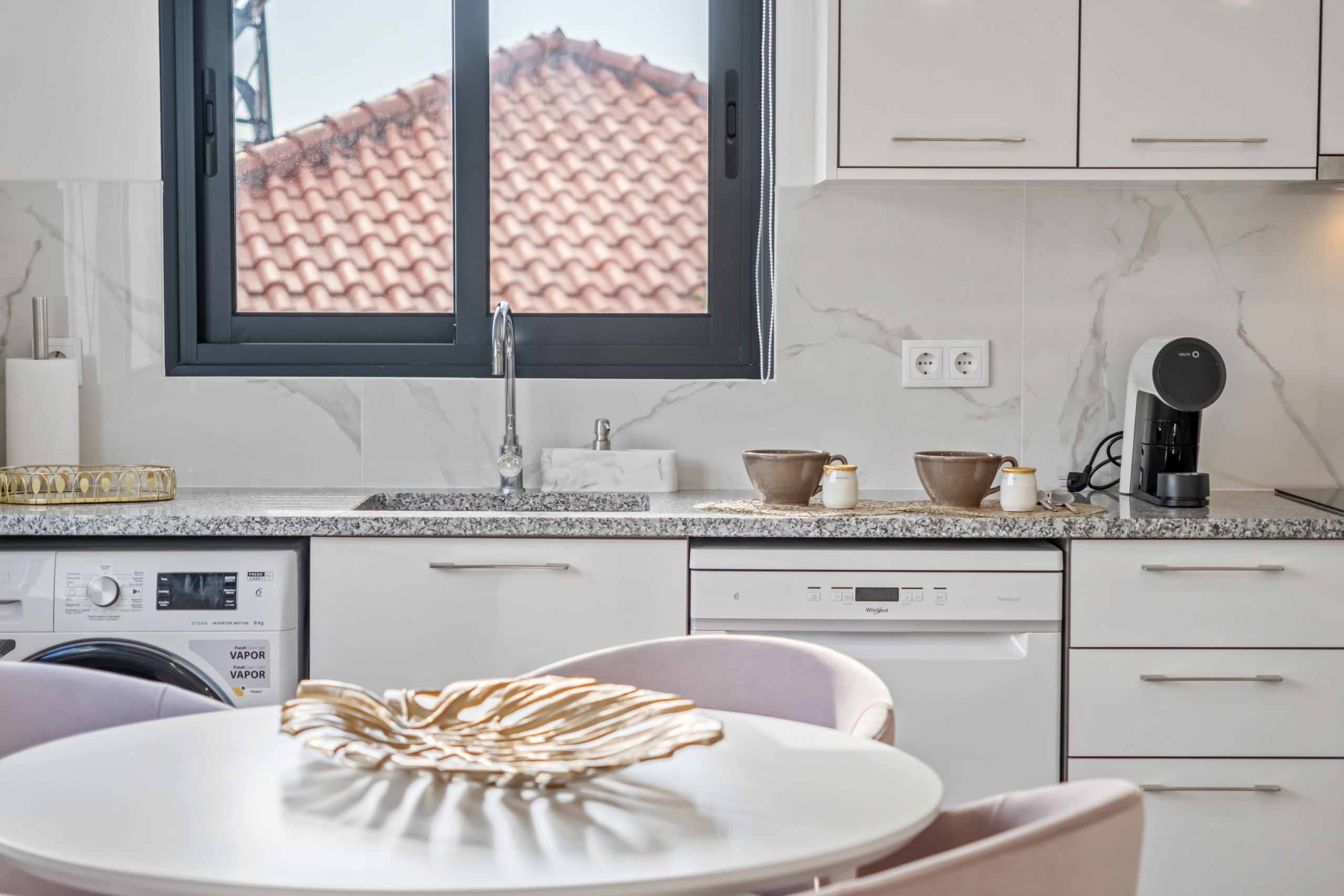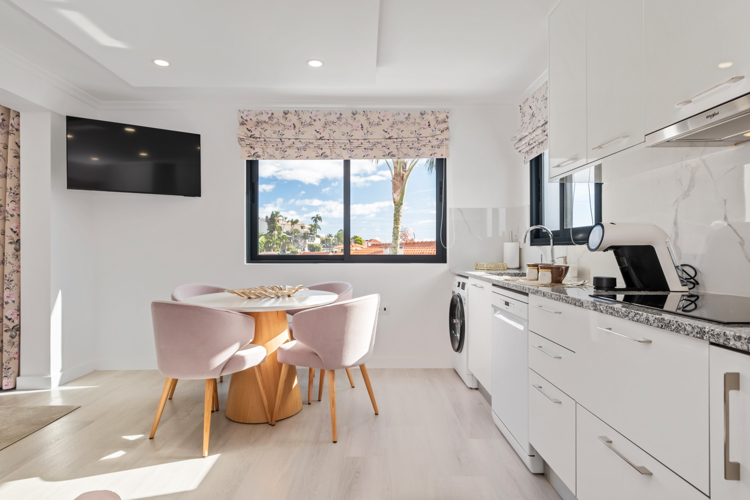 La Pink Room combine des tons de rose et de blanc, créant un environnement délicat, élégant et plein de personnalité. Ce studio peut accueillir trois personnes, en devenant l'espace idéal pour ceux qui recherchent un séjour tranquille, mémorable et plein de charme.