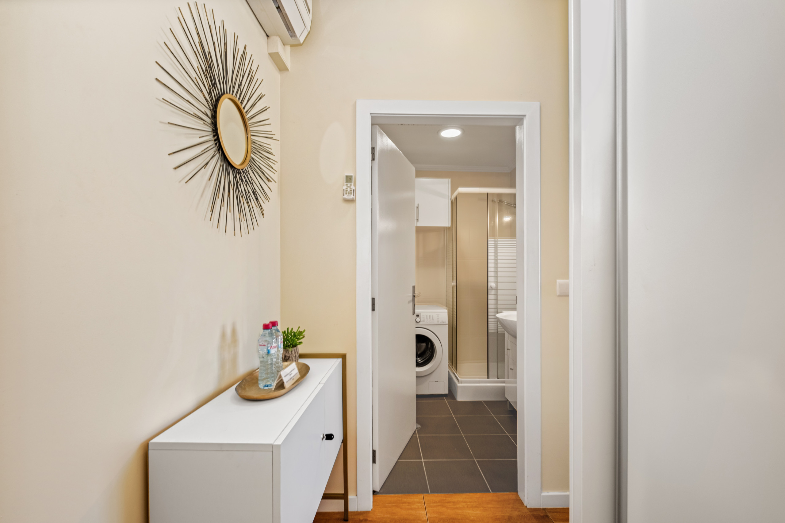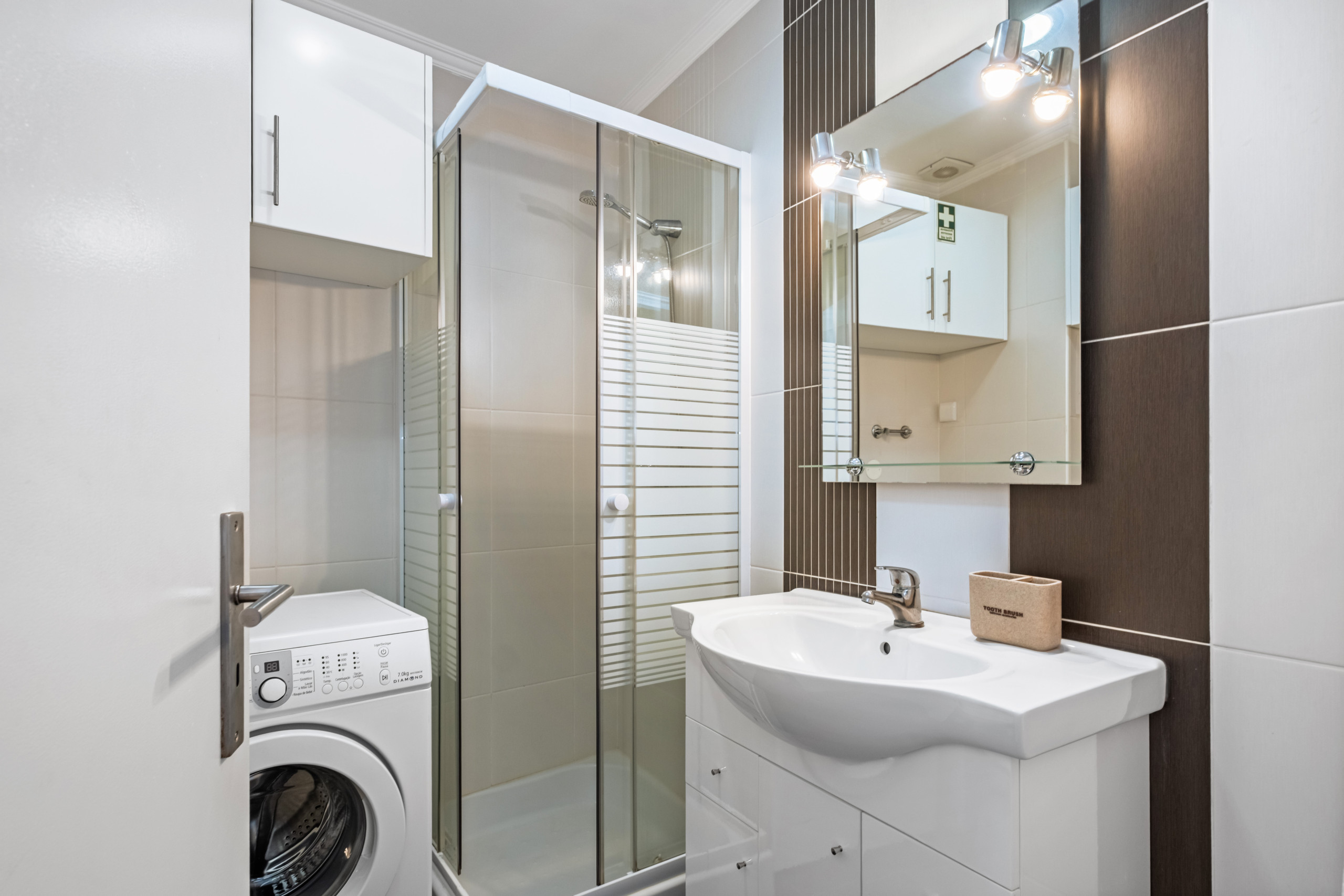 La salle de bain privée, équipée d'une douche et d'une machine à laver, garantit tout le confort pendant votre séjour.