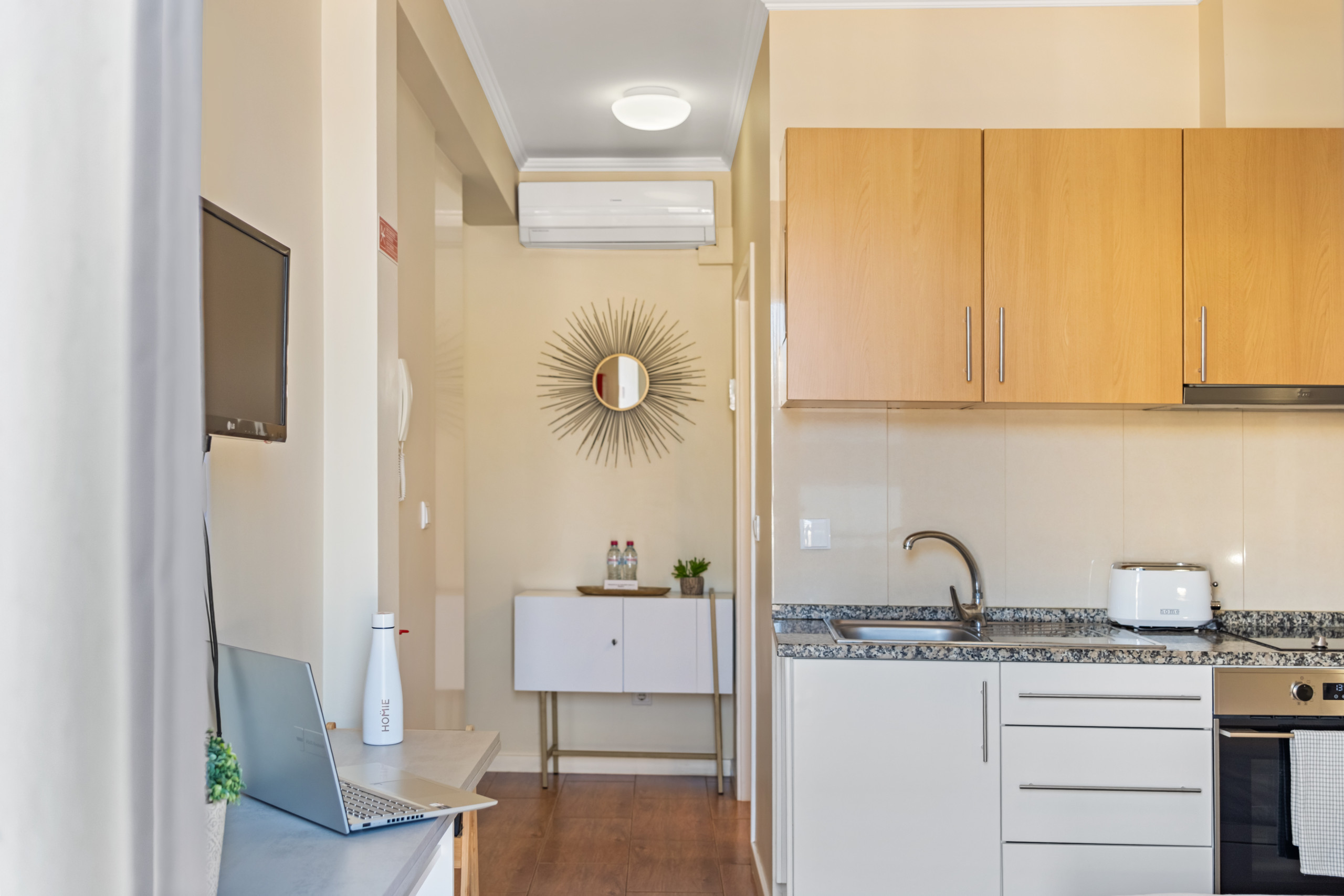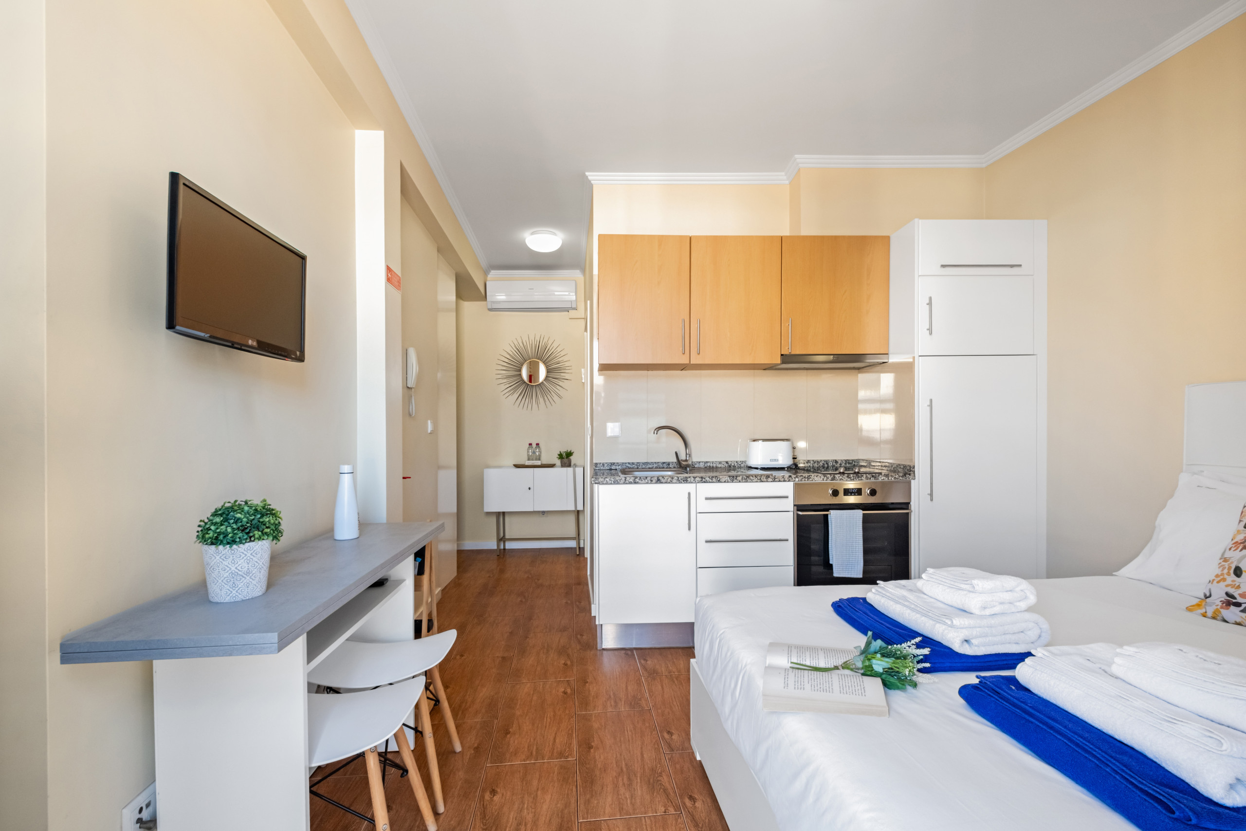 Ce studio dispose également d'une kitchenette, compacte mais entièrement équipée avec cuisinière, four, réfrigérateur et ustensiles essentiels, vous permettant de préparer vos repas facilement. Néanmoins, si vous préférez explorer, vous trouverez à votre porte une vaste offre de restaurants et de cafés, parfaits pour découvrir les saveurs locales.