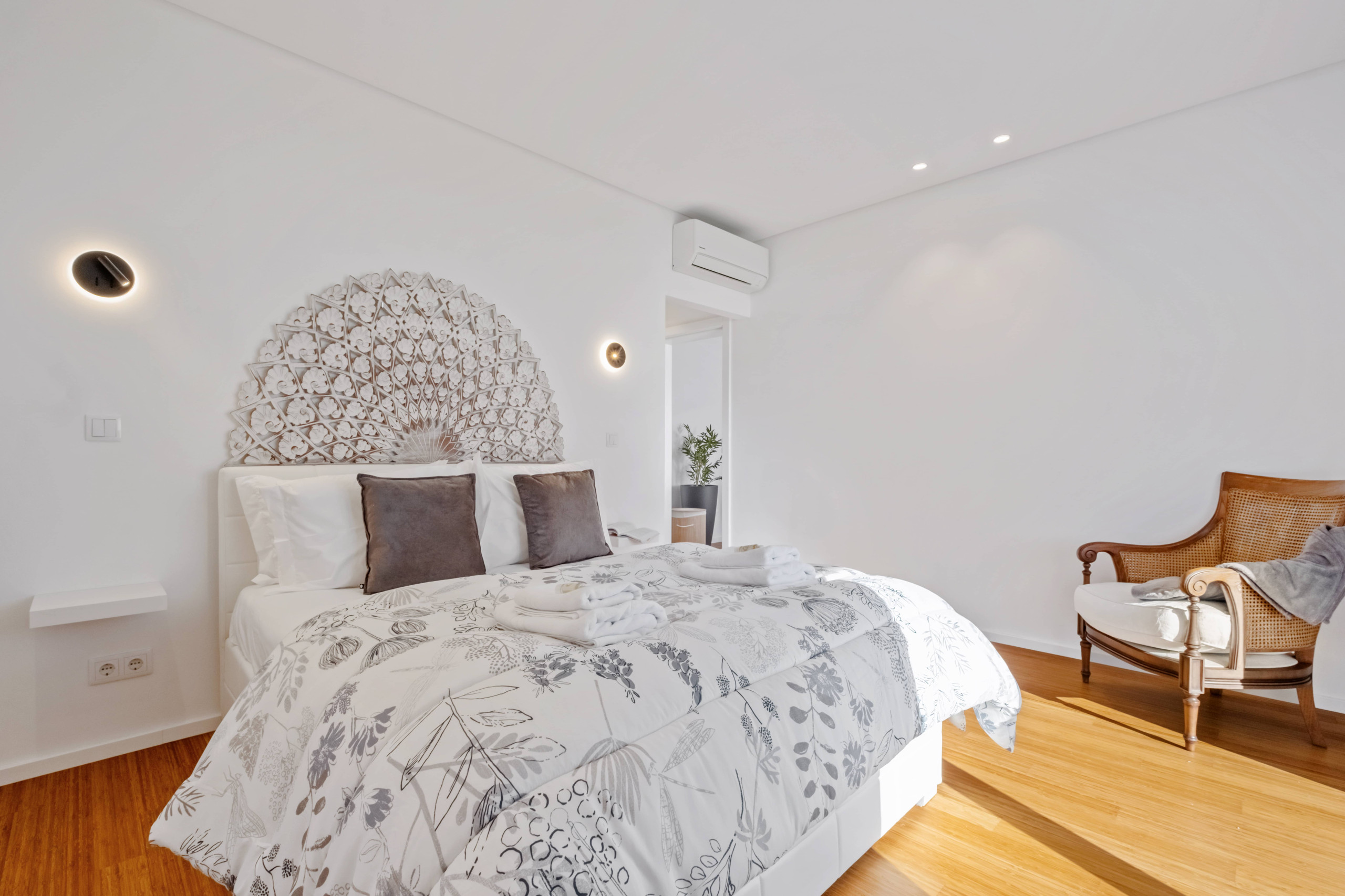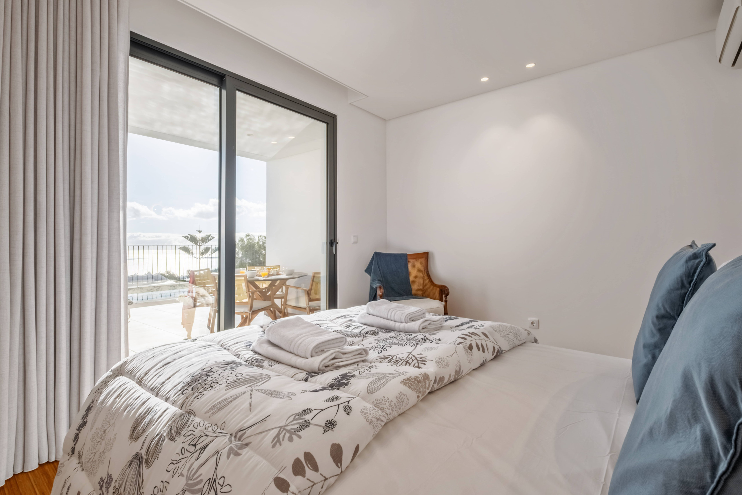 Le logement a été conçu pour offrir du confort, de la luminosité et une connexion constante avec l'extérieur. Il dispose de deux chambres, toutes deux avec un lit double, une salle de bain privative et vue sur la mer, offrant intimité et bien-être à tous les invités. Chaque chambre offre également un accès direct à la terrasse extérieure, permettant de se réveiller et de sortir directement dans le jardin, en ressentant la tranquillité environnante.