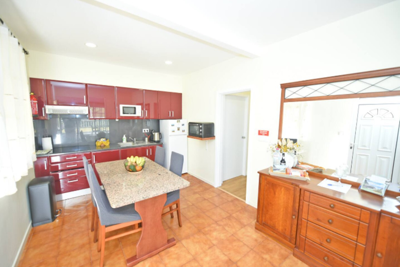 Les espaces communs sont spacieux et accueillants, avec un salon lumineux où il est facile de se sentir chez soi. La cuisine entièrement équipée dispose de tout ce dont vous avez besoin pour préparer n'importe quel repas, des petits-déjeuners tranquilles aux dîners partagés après une journée d'aventures sur l'île.