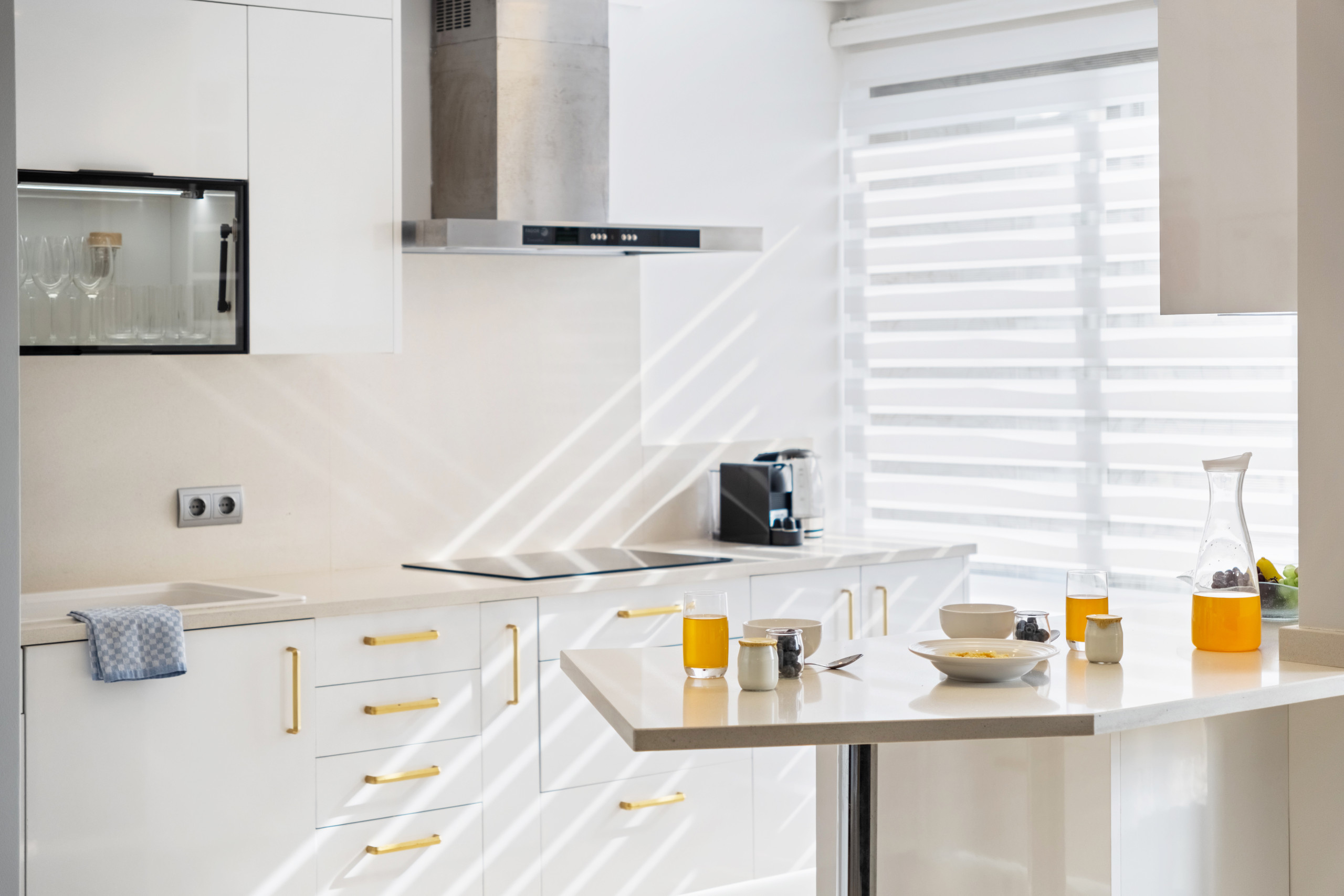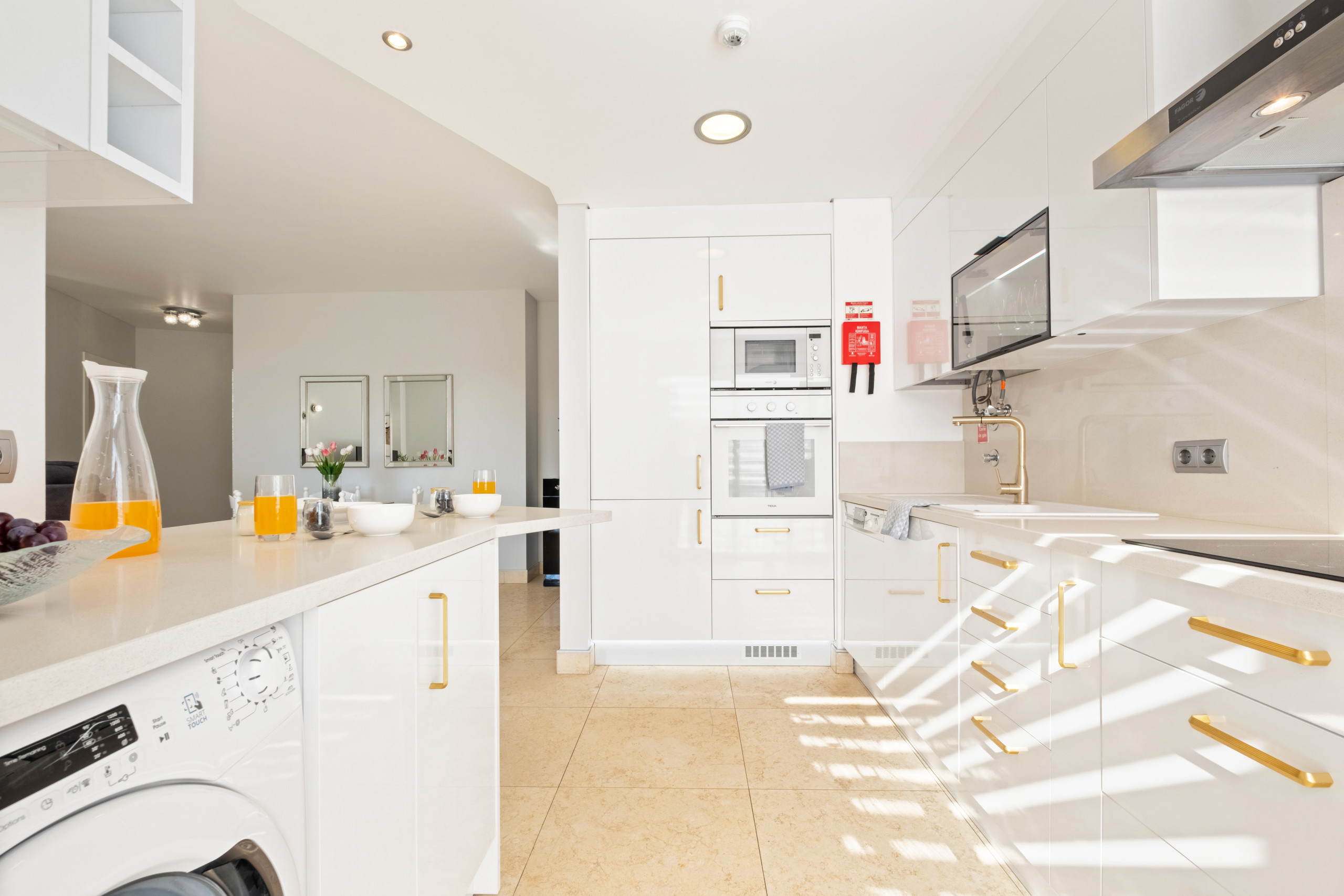 A cozinha em conceito open space integra-se harmoniosamente com a sala de estar, criando um espaço luminoso e convidativo para refeições, convívio ou momentos de descanso. Esta é totalmente equipada com todos os utensílios necessários, permitindo preparar as suas refeições com toda a comodidade.