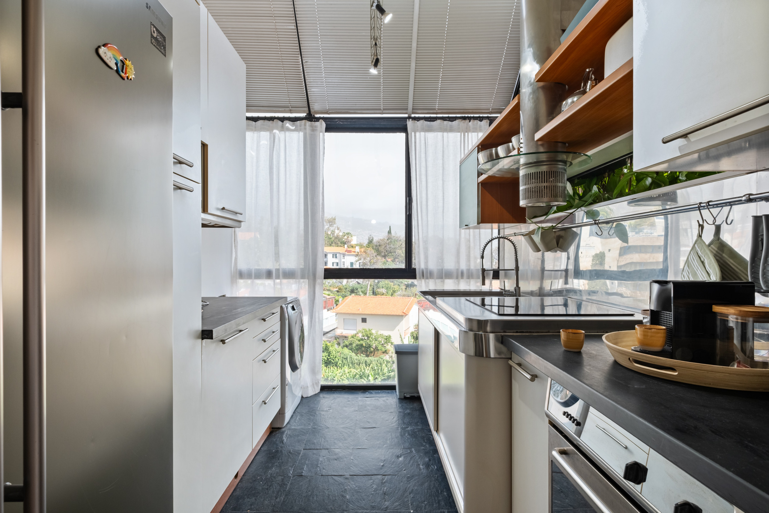 Ao entrar, somos recebidos por um espaço luminoso, onde a sala de estar se abre para uma ampla varanda com uma vista deslumbrante sobre a cidade e o Atlântico, oferecendo o cenário perfeito para apreciar a vista deslumbrante sobre o Funchal e sobre o Oceano Atlântico, brindar ao final do dia ou simplesmente perder-se na beleza do horizonte.