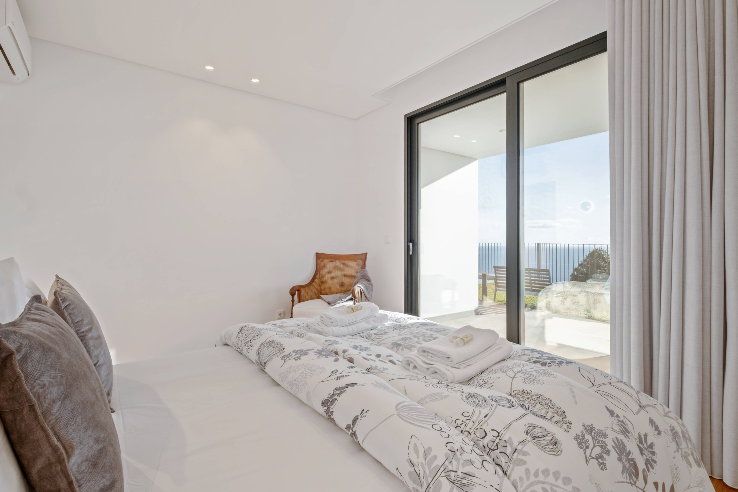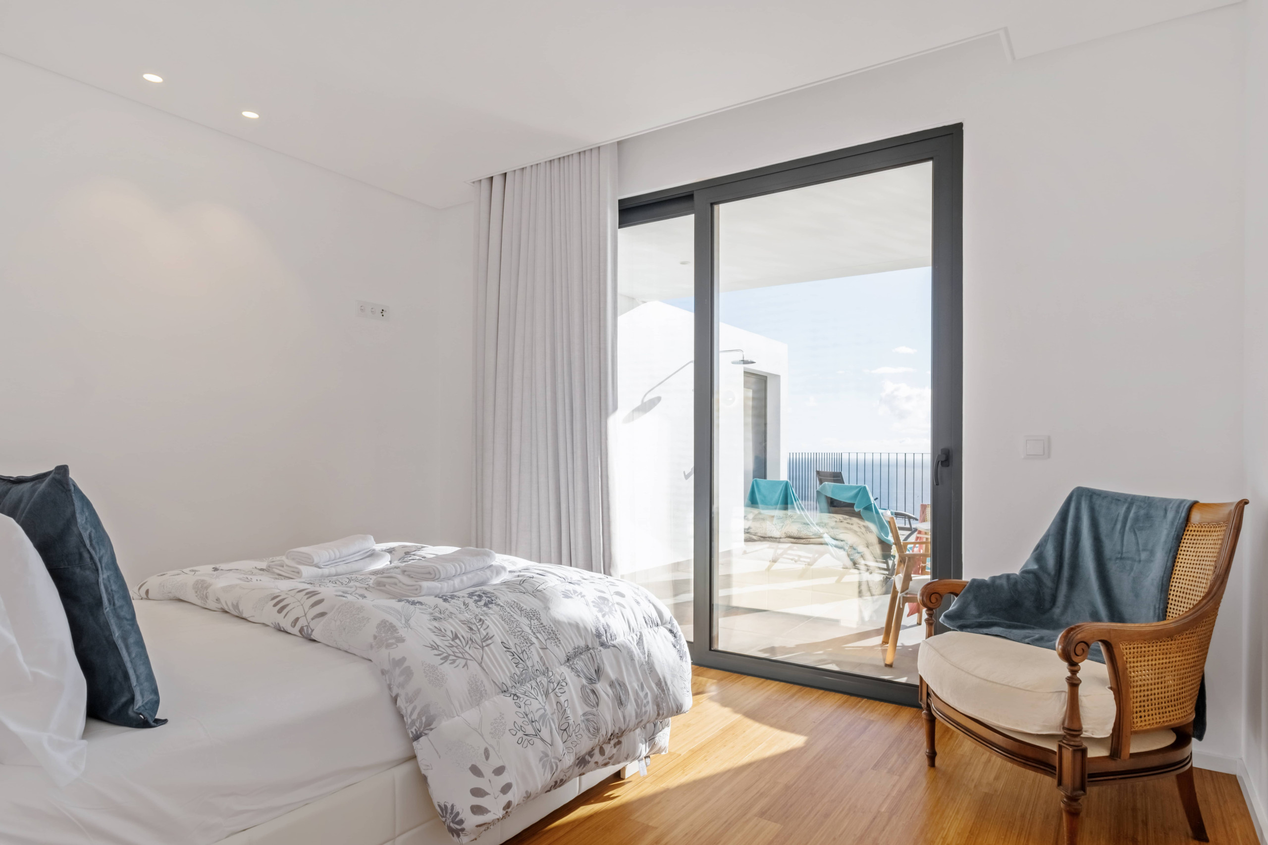 O alojamento foi concebido para oferecer conforto, luminosidade e uma ligação constante ao exterior. Dispõe de dois quartos, ambos com cama de casal, casa de banho privativa e vista sobre o mar, proporcionando privacidade e bem-estar a todos os hóspedes. Cada quarto oferece ainda acesso direto ao terraço exterior, permitindo acordar e sair diretamente para o jardim, sentindo a tranquilidade envolvente.