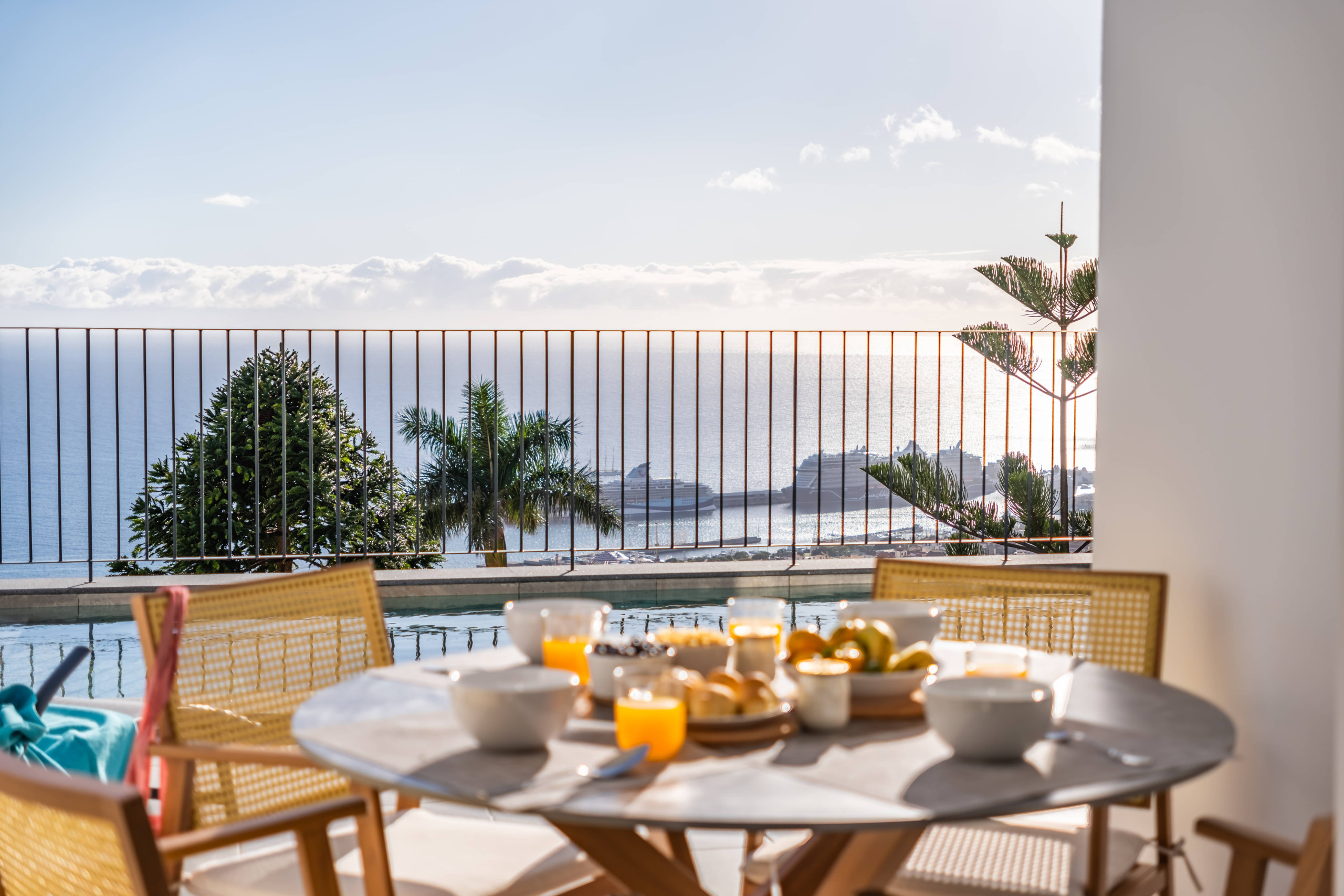 O verdadeiro destaque está no exterior: uma área ampla e totalmente equipada para o seu lazer. Aqui, poderá relaxar ao ar livre, apreciar o pôr do sol único sobre a baía do Funchal ou até desfrutar de refeições em família ou com amigos, rodeado pela tranquilidade e pelas vistas arrebatadoras.