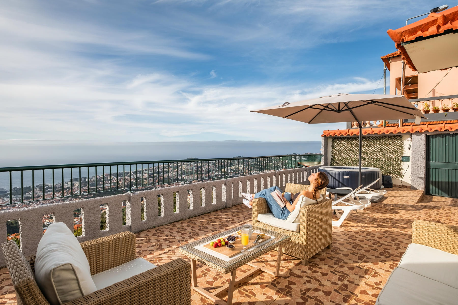 On the terrace, an invitation to sensory delight awaits you. Equipped with comfortable outdoor furniture, it is the ideal location to enjoy stunning views over the Pacific Ocean and the majestic mountains surrounding Funchal. Each sunrise and sunset is a masterpiece of nature, painting the sky with dazzling colours that illuminate the soul.