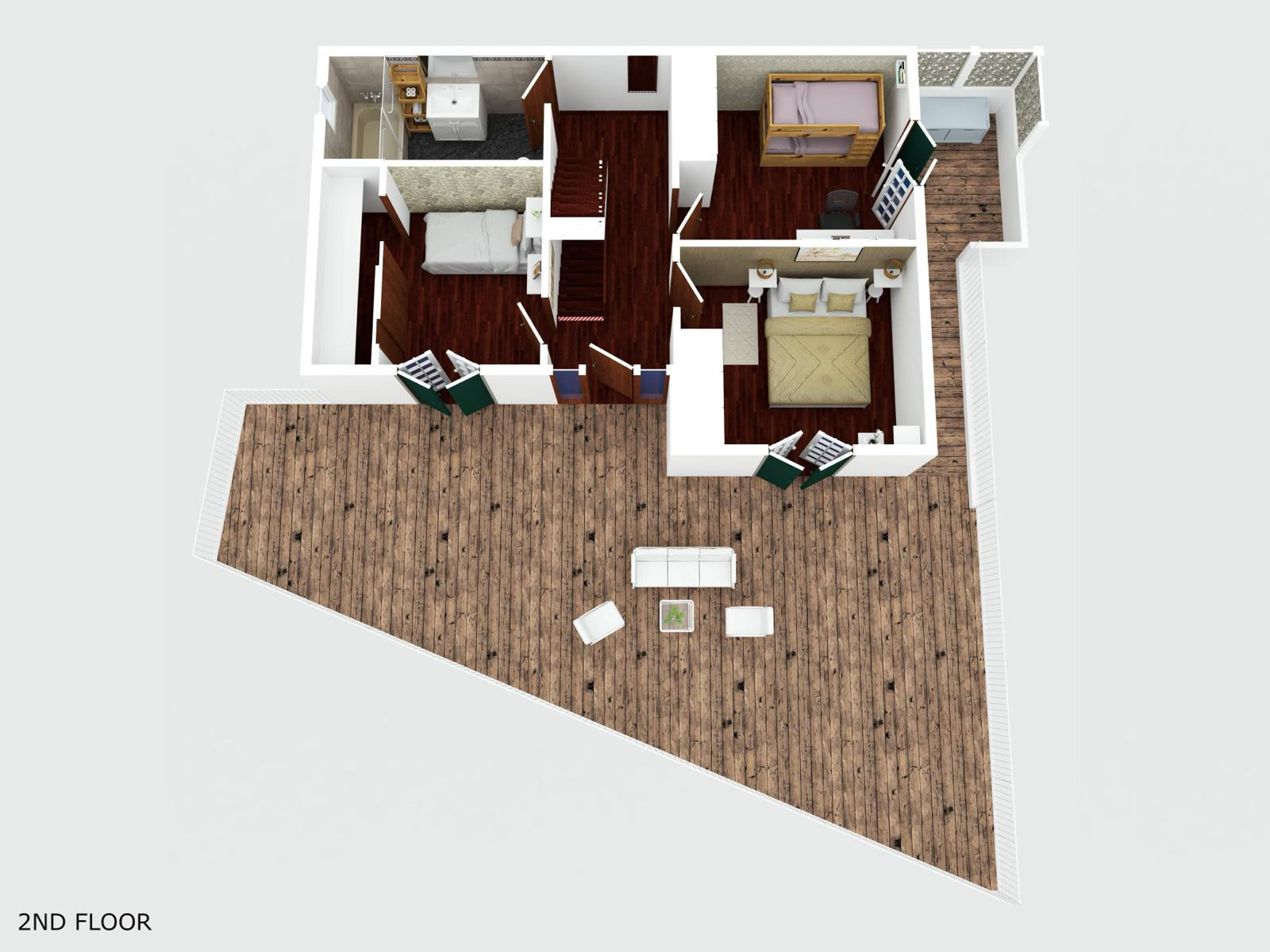 One room has a double bed, another offers a practical bunk bed, and the third bedroom entails a single bed which can be converted to a double bed, making the space ideal for families or groups. Each room has direct access to the balcony, from where one can enjoy a wonderful view — one of the great charms of Lovely Lugar.